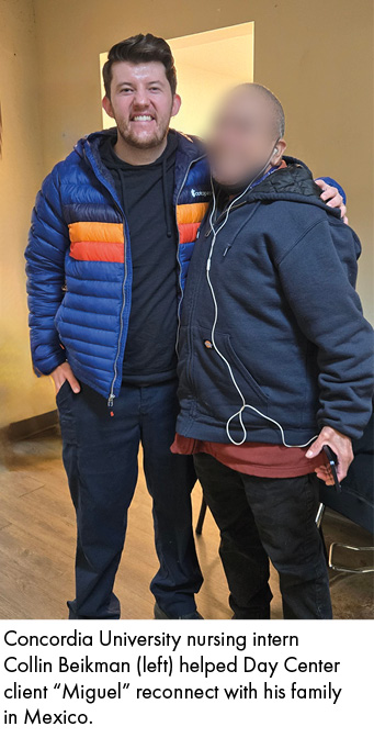 their internships in person in the Portland metro area. The interns assist clients at the Day Center while also learning practical skills from their nursing teacher, Cris Pinzon, Concordia University adjunct clinical nursing faculty.